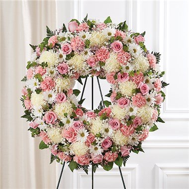 Serene Blessings Pink & White Standing Wreath